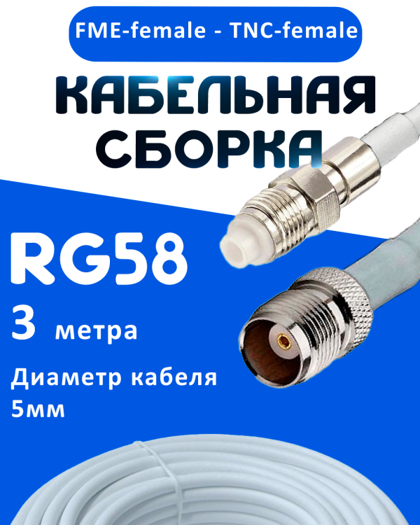 Кабель в сборе RG-58 FME-female - TNC-female — это высококачественный коаксиальный кабель, предназначенный для использования в различных приложениях. Этот кабель идеально подходит для подключения антенн, радиоприемников и других устройств, требующих надежного и безопасного соединения.
