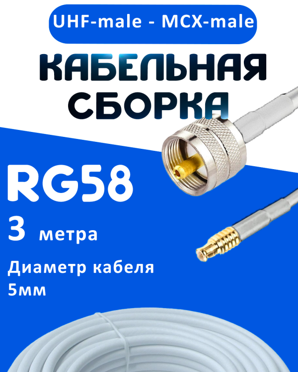 Кабель в сборе RG-58 UHF-male - MCX-male — это высококачественный коаксиальный кабель, предназначенный для использования в различных приложениях. Этот кабель идеально подходит для подключения антенн, радиоприемников и других устройств, требующих надежного и безопасного соединения.