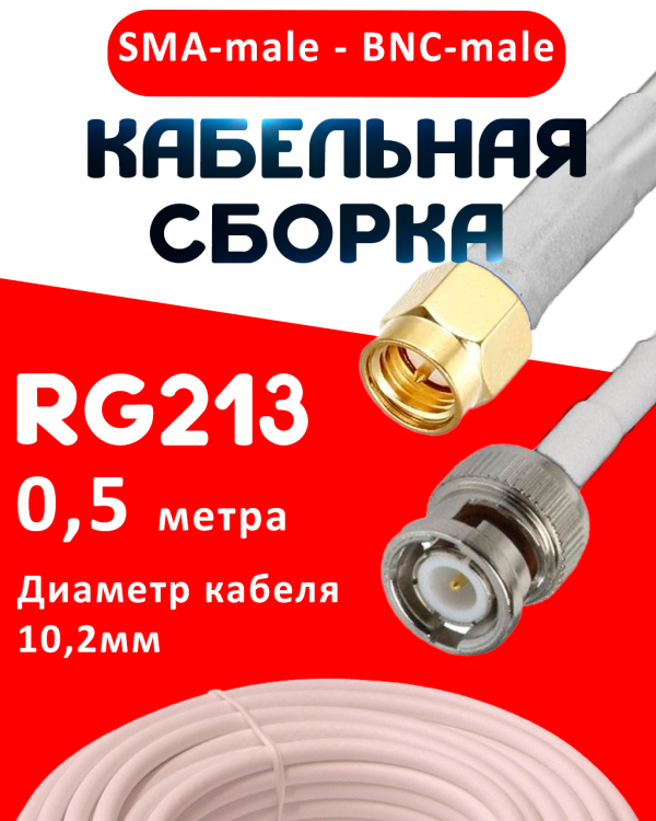 Кабельная сборка RG-213W - с разъемами SMA-male - BNC-male